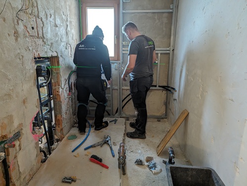 - Démontage des anciens appareils sanitaires (douche, lavabo, WC)