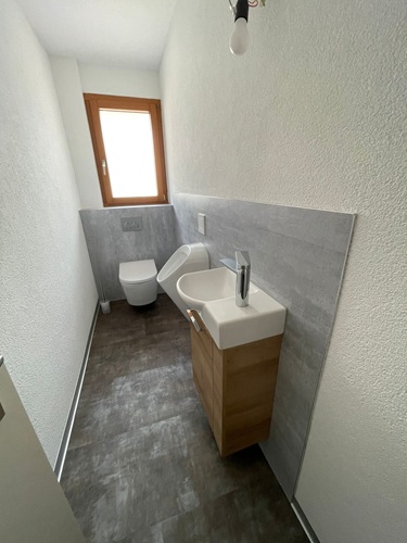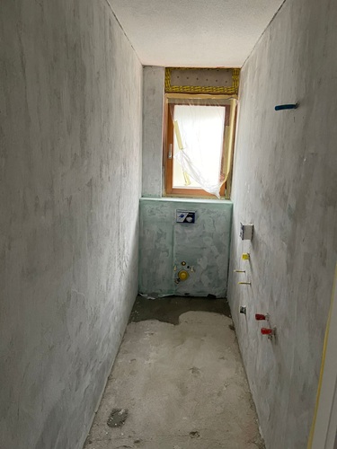 Situation initiale : La salle de bain et les WC doivent être rénovés et apparaître sous un nouveau jour.